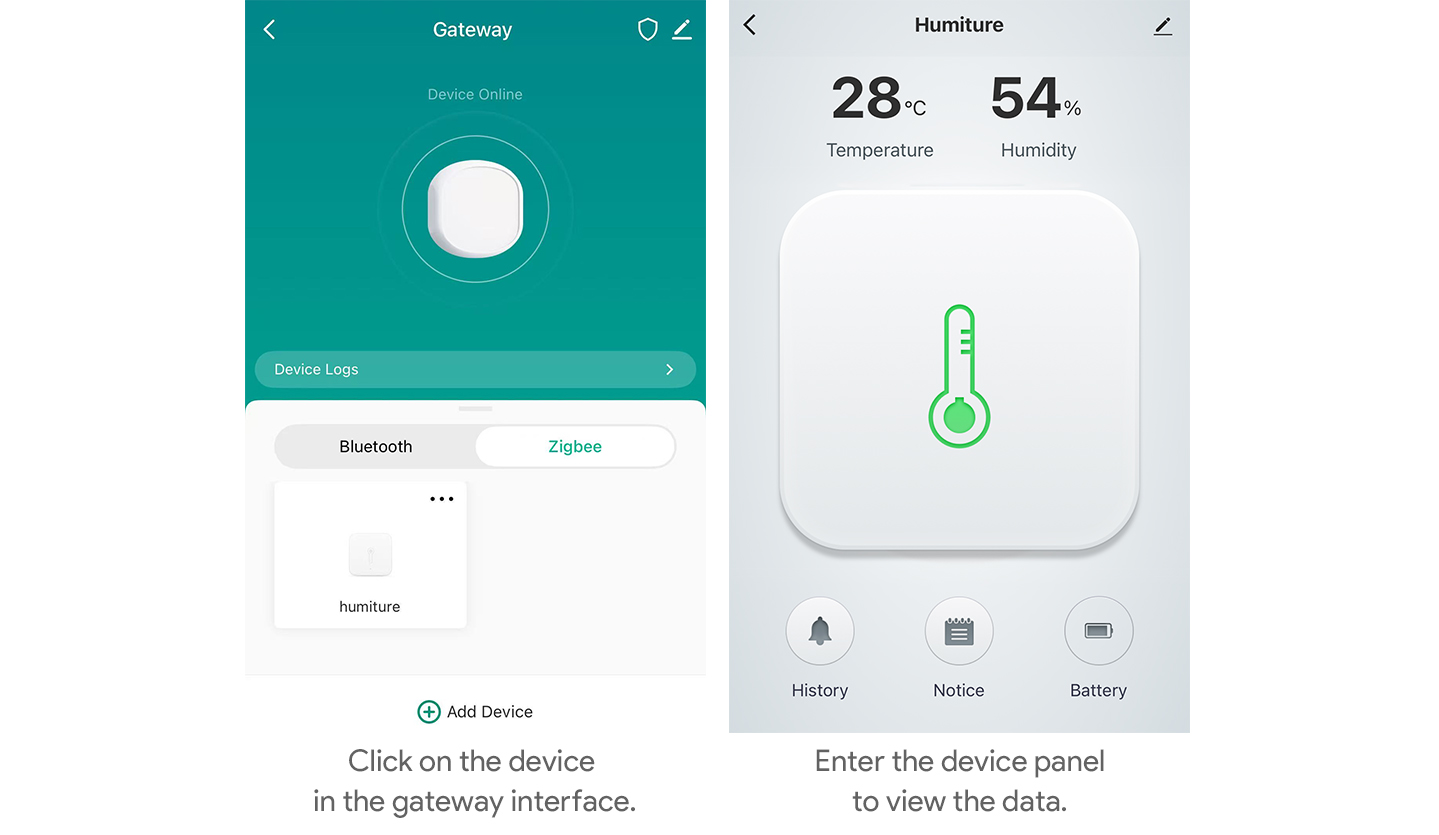 This temperature and humidity sensor needs a smart gateway to connect to Zigbee network.