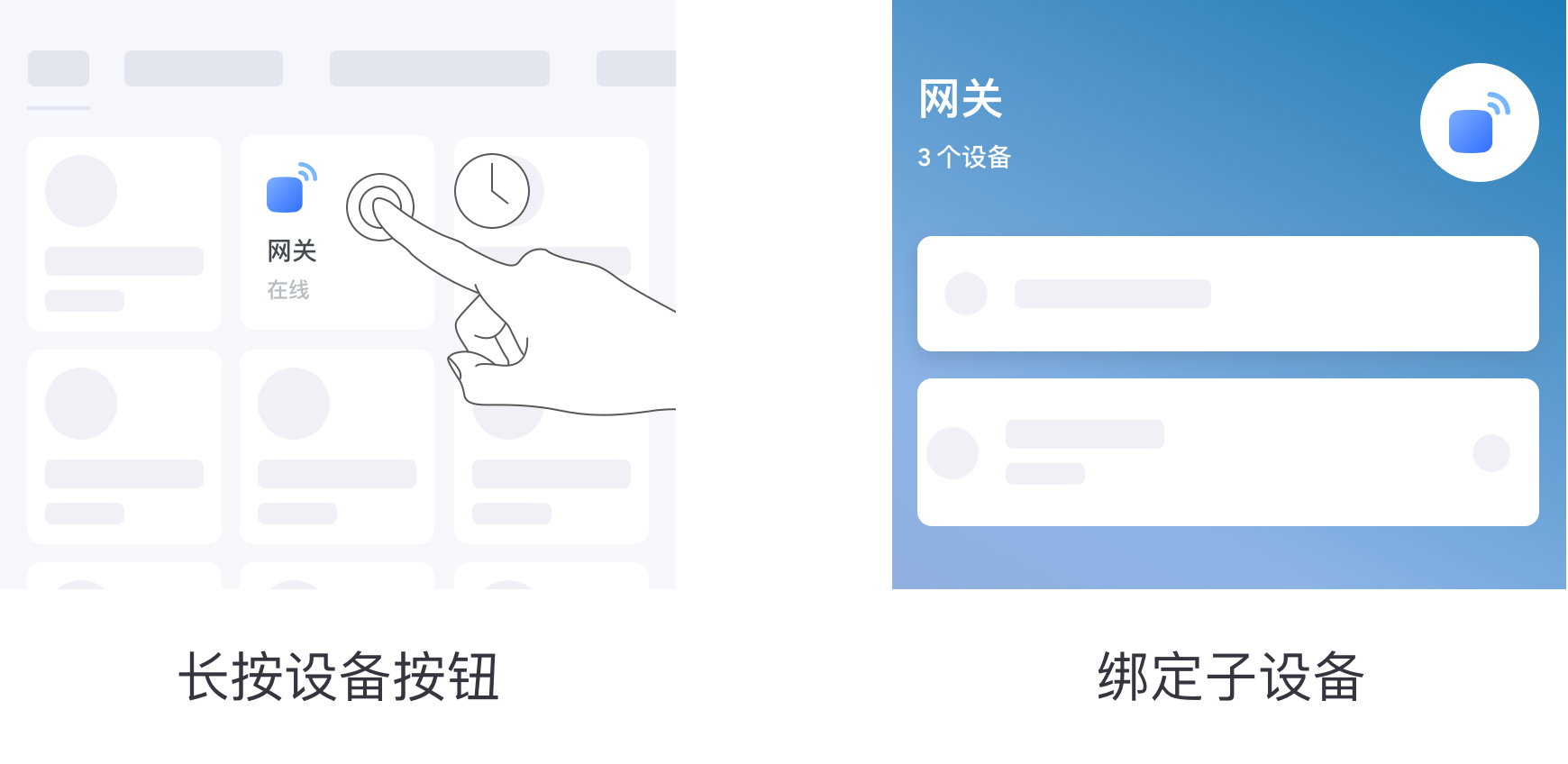 要将蓝牙设备绑定到 Hub,请在应用程序中长按 HomeHub 按钮进入其控制面板。点击右上角的“+”按钮,可以选择可以绑定的子设备。